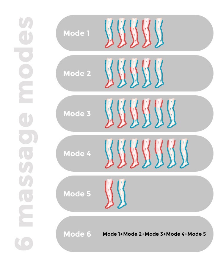 يتميّز جهاز تدليك الساقين الذي نقدّمه بتصميم سحاب لسهولة الارتداء ولوحة لمس سهلة الاستخدام لضبط الوظائف المختلفة.