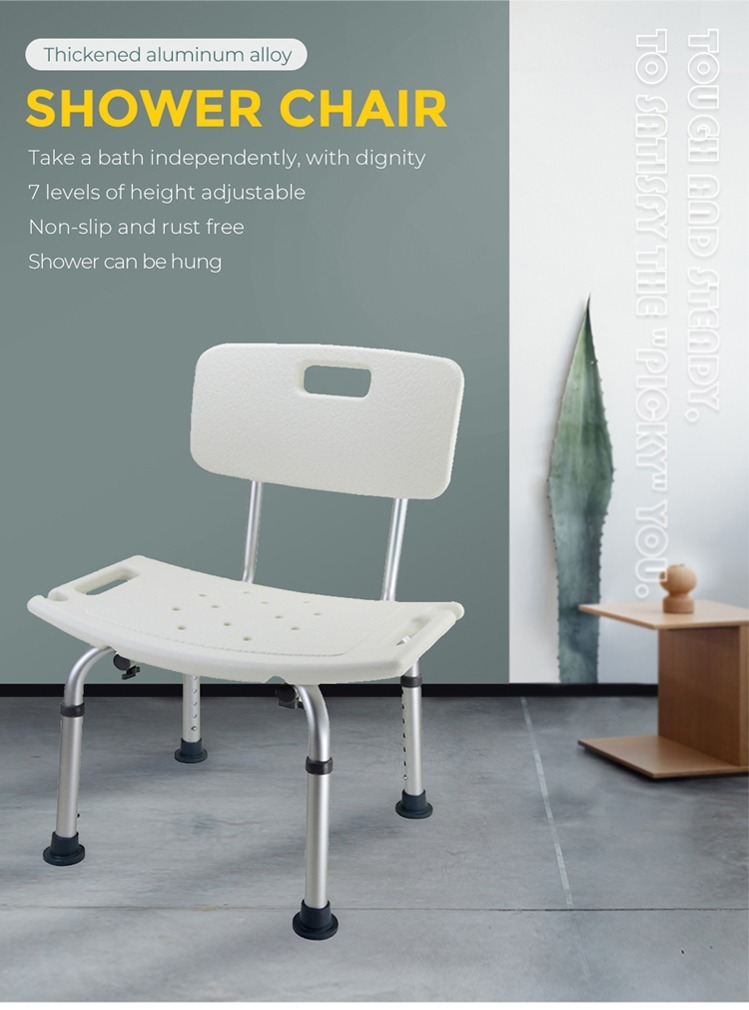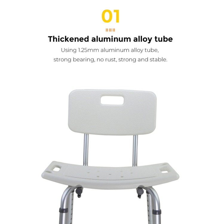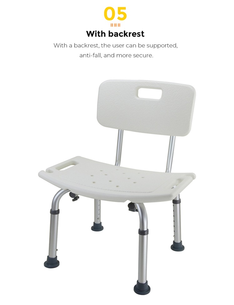 Wir stellen unseren Aluminiumlegierungs-Badstuhl mit Rückenlehne vor, mit 7-stufiger Höhenverstellung für verschiedene Benutzerhöhen. Ausgestattet mit einer Duschschnalle wird das Baden noch bequemer. Die Einzelteilstruktur der Sitzplatte ermöglicht eine einfache werkzeuglose Installation.