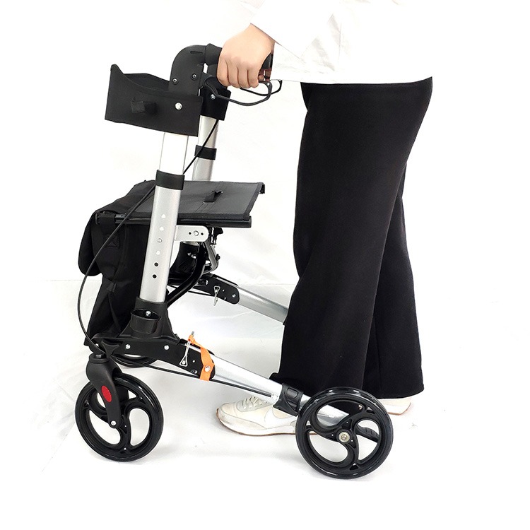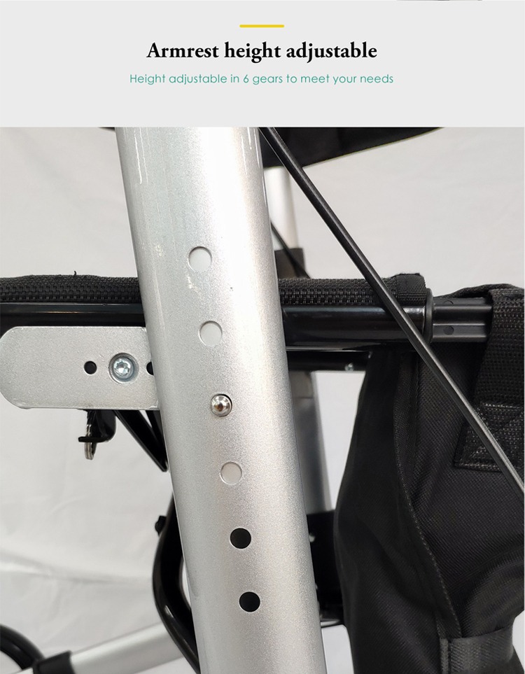 Walker rollator, also known as a rolling walker, wheeled walker, or medical rolling walker, is a mobility aid that features wheels on all legs. The wheels allow the user to easily push the rollator forward, eliminating the need to lift the device when moving. However, it's important to note that rollators should not be used to support body weight as this can result in falls. Many rollators come with a seat, some also have a removable backrest, to provide balance while sitting.