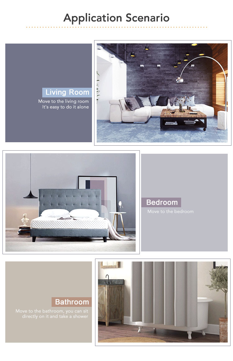 O elevador de transferência de pacientes BMW03 é feito de aço de alto carbono Q235 de grau especial feito à medida e pode suportar até 150KG. É fácil de instalar sem ferramentas extra, e a altura de deslocação do gancho e do assento é de até 35 cm, o que pode ser utilizado numa variedade de cenários. IP44 à prova de água, fácil de resolver os problemas da casa de banho e do banho do paciente. Abertura e fecho fáceis de 180 graus, movimento flexível.
