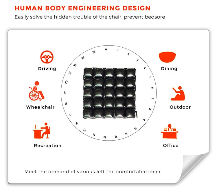 Vantagens: A almofada de assento Senyang Air oferece um conforto e apoio excepcionais através da utilização de tecnologia avançada de células de ar. Concebida para distribuir uniformemente a pressão, esta almofada ajuda a prevenir úlceras de pressão e proporciona alívio aos utilizadores que precisam de se sentar durante longos períodos. As câmaras cheias de ar podem ser ajustadas para um controlo personalizado da pressão, garantindo um conforto ideal e reduzindo o risco de desconforto durante longas sessões de assento.